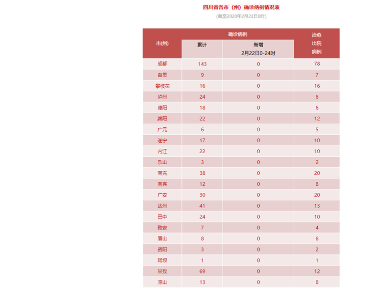 四川省各市(州)确诊病例情况表