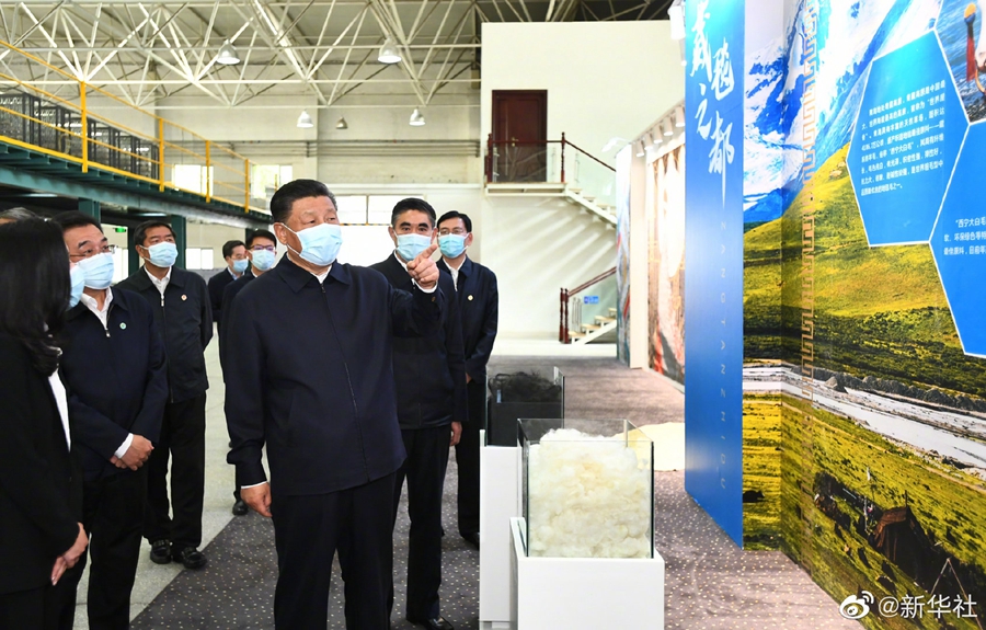 习近平总书记7日赴青海考察调研。当天下午,他来到位于西宁市的青海圣源地毯集团有限公司,了解企业依托当地原材料资源优势,创新设计理念,提升产品竞争力,带动群众就业增收等情况。随后,习近平来到文汇路街道文亭巷社区,考察社区加强基层党建、完善基层治理、推进民族团结进步等情况。(文字记者:张晓松、朱基钗;摄影记者:李学仁、谢环驰、燕雁、申宏)