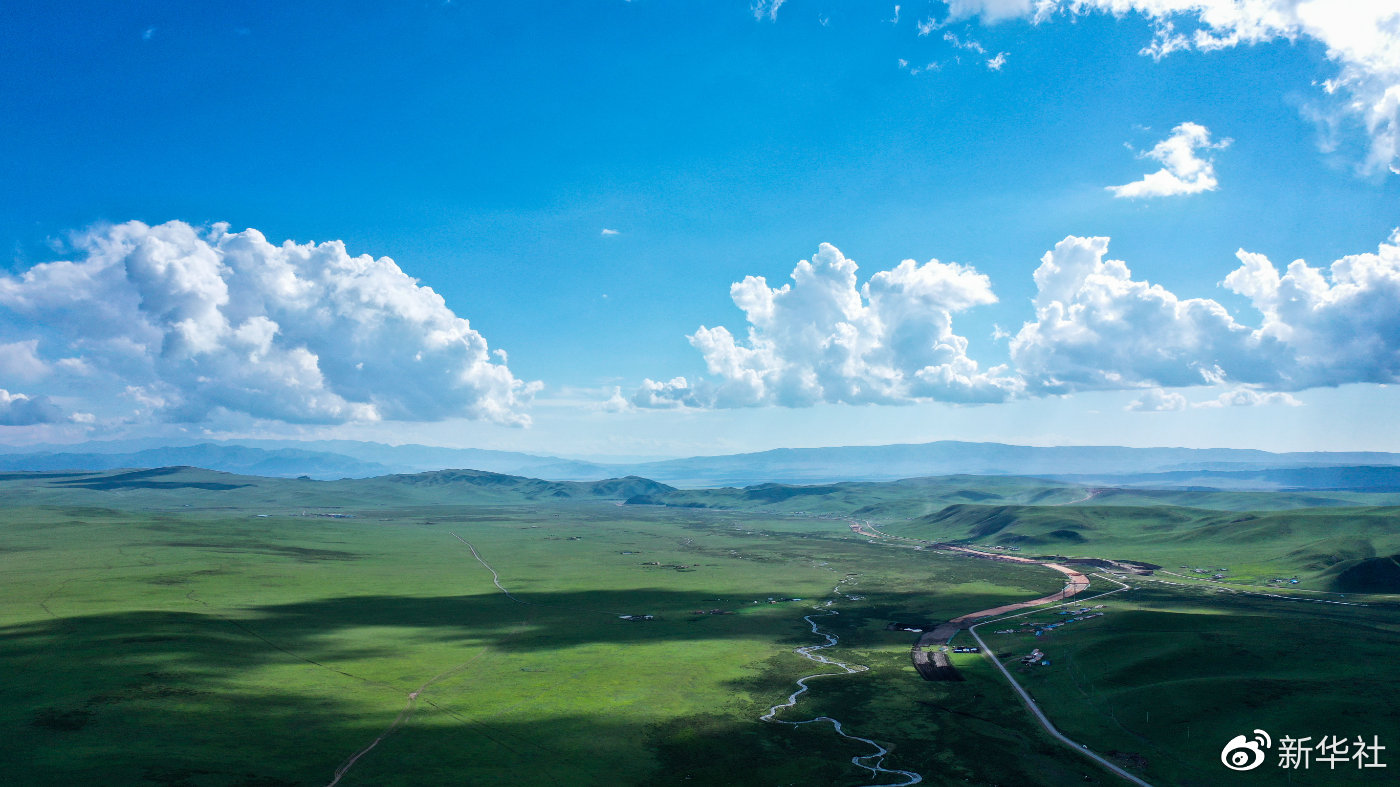 这是2020年7月30日拍摄的金银滩草原(无人机照片)。新华社记者 吴刚 摄