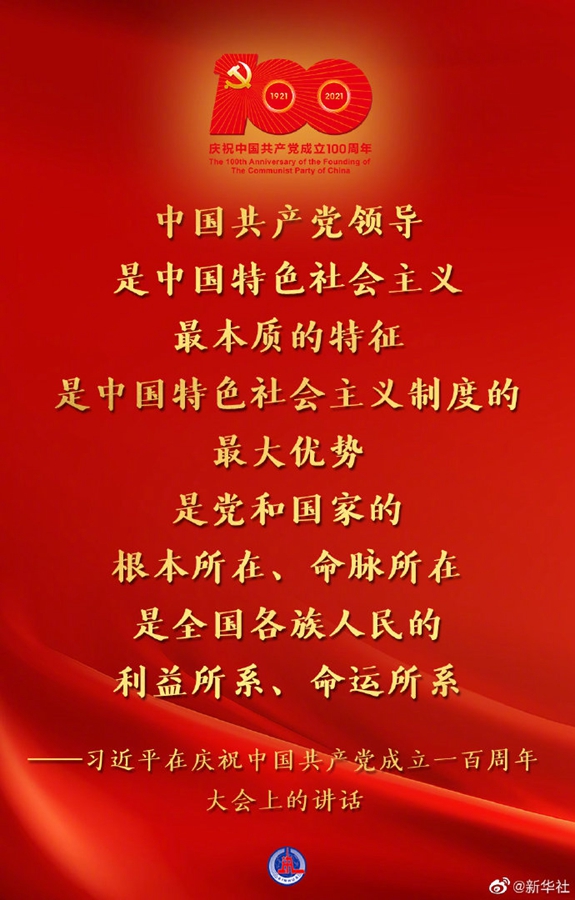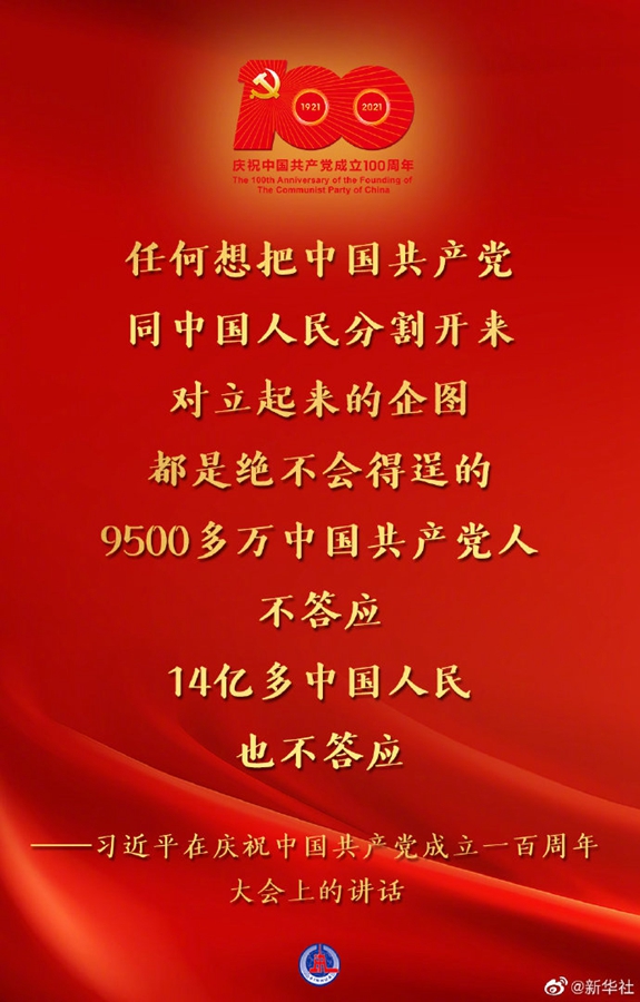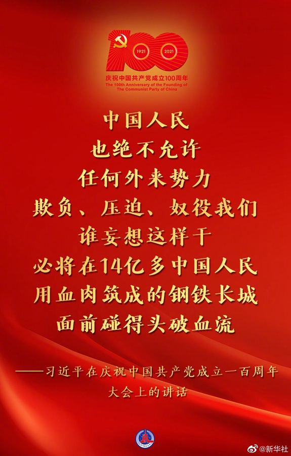 习近平在庆祝中国共产党成立一百周年大会上的讲话金句