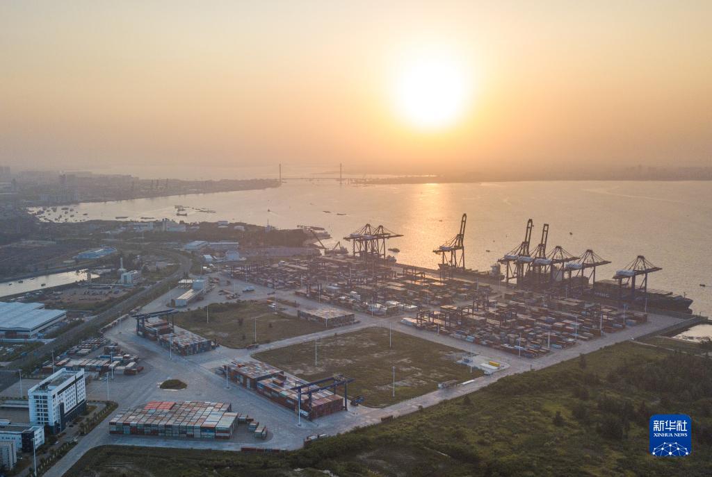 这是2022年9月25日在海南洋浦经济开发区拍摄的洋浦国际集装箱码头(无人机照片)。新华社记者 蒲晓旭 摄