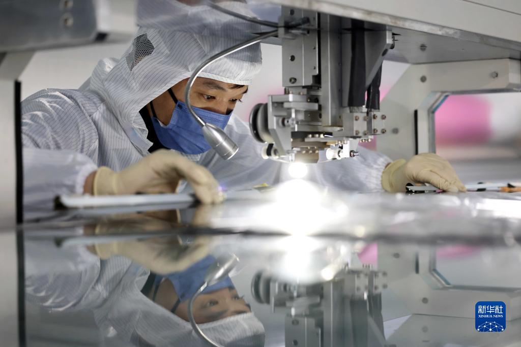 1月5日,在合肥市瑶海区长三角数字科技示范园,合肥统旭智慧科技有限公司的员工在智慧显示屏生产线上作业。新华社发(解琛 摄)
