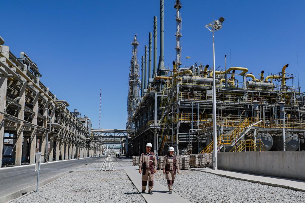 这是去年8月18日在乌兹别克斯坦纳沃伊市拍摄的纳沃伊氮肥股份公司聚氯乙烯工厂。