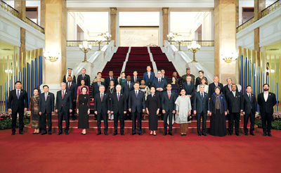 习近平和彭丽媛为出席第三届“一带一路”国际合作高峰论坛的国际贵宾举行欢迎宴会