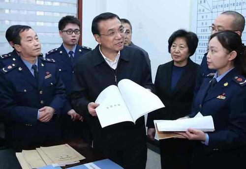 2013年12月27日下午在天津大营门工商所,李克强总理详细询问辖区食品生产经营商户的监管方式和质检手段。他提醒工作人员,食品关系群众健康和生命,要绝对保证安全。大部分消费者直接从市场购买食品,工商部门要瞪起火眼金睛防止出现食品安全问题,并为工商户提供良好服务。