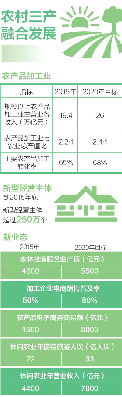 推进农村三产融合,必须加快发展农产品电商和促进农产品加工业发展,着力提高农业全产业链收益。