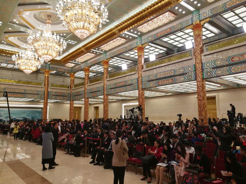 距离总理记者招待会还有不到一个小时了!人民大会堂金色大厅已经座无虚席。全球各路媒体的记者早早来到这里抢占最佳位置。在十二届全国人大五次会议闭幕后,李克强总理将在这里会见中外记者,并回答提问。