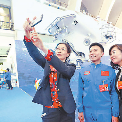 一组组数据,一张张图片,一件件模型,让代表们非常具体、直观、全面、系统地感受到党的十八大以来在以习近平同志为核心的党中央坚强领导下,我国在社会经济、科技文化、生态环境、人民生活等方面所发生的翻天覆地的变化,取得的举世瞩目的伟大成就,赢得代表们纷纷点赞。