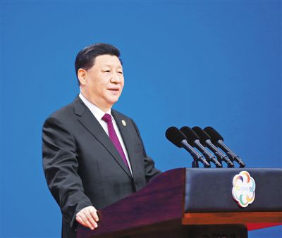 上午10时30分许,习近平和外方领导人共同步入会场。在热烈的掌声中,习近平走上主席台,发表主旨演讲。