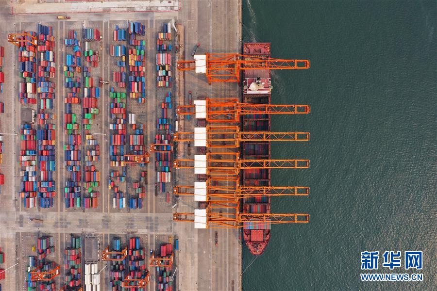 这是广西钦州保税港区集装箱码头(4月11日无人机拍摄)。 新华社记者 曹祎铭 摄