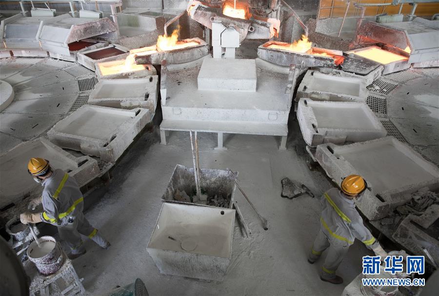 2018年8月8日,在安徽铜陵有色金冠铜业分公司精炼车间,工人冒着高温工作。铜陵有色集团痛下决心,淘汰落后产能,于2007年底关闭了新中国第一座铜冶炼厂——第一冶炼厂,2017年又对第二冶炼厂实施永久关停。 新华社记者 金立旺 摄