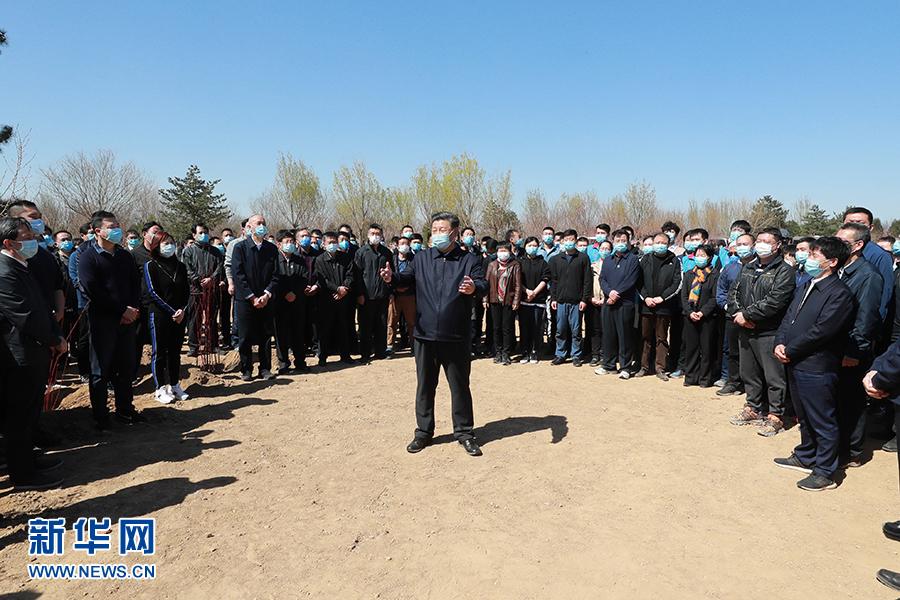 新华社北京4月3日电(记者吴晶、杨依军)中共中央总书记、国家主席、中央军委主席习近平3日上午在参加首都义务植树活动时强调,在全国疫情防控形势持续向好、复工复产不断推进的时刻,我们一起参加义务植树,既是以实际行动促进经济社会发展和生产生活秩序加快恢复,又是倡导尊重自然、爱护自然的生态文明理念,促进人与自然和谐共生。要牢固树立绿水青山就是金山银山的理念,加强生态保护和修复,扩大城乡绿色空间,为人民群众植树造林,努力打造青山常在、绿水长流、空气常新的美丽中国。
