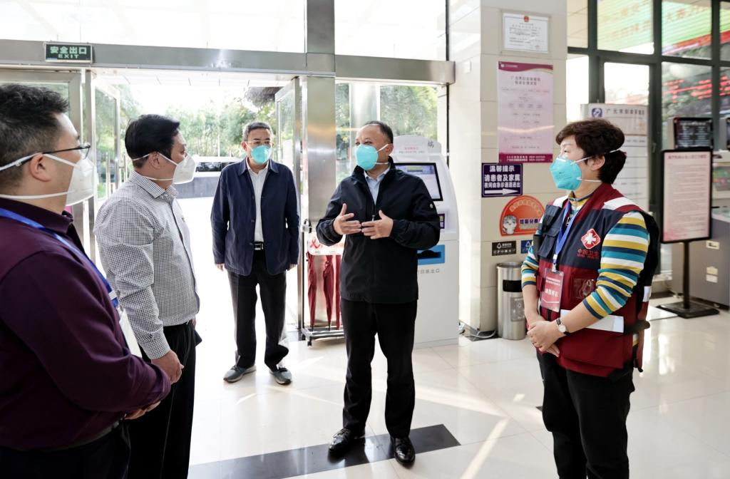 广元新闻网讯(广元日报全媒体记者 唐彪/文 赵恒/图)10月22日下午,市委书记、市应对新型冠状病毒肺炎疫情前线联合指挥部总指挥长何树平深入部分医疗机构督导检查群众就医需求服务保障工作,并看望慰问一线医务工作人员代表。他强调,要深入学习贯彻习近平总书记关于疫情防控工作的重要指示精神,认真落实省委省政府部署要求,坚持人民至上、生命至上,把群众就医需求服务保障工作放在更加突出的位置,尽最大努力保障好群众正常就医需求,用心用情守护好人民安全健康。