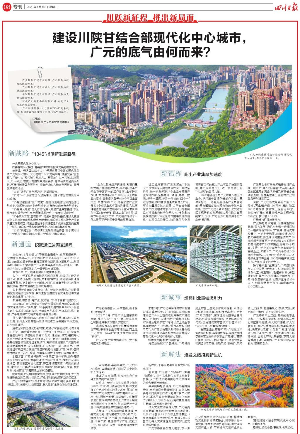 广元科学作答:大力实施“1345”发展战略,加快建设川陕甘结合部现代化中心城市。
