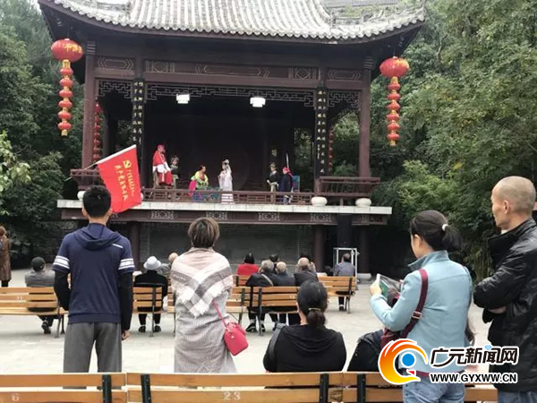 10月5日,记者在千佛崖景区看到,精彩的川剧表演吸引了众多游客在台前观看。据了解,国庆期间,千佛崖景区每天推出川剧表演活动,直到假期末才结束。 (广元日报全媒体记者 刘怀英 张欣 文/图)