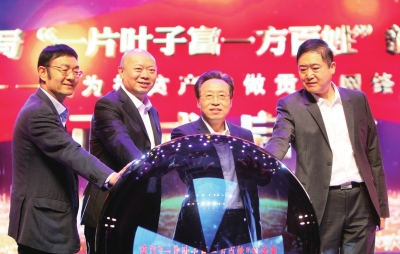王菲、王小刚、邹自景、邓光志一同启动网络扶贫活动。 记者赵恒摄