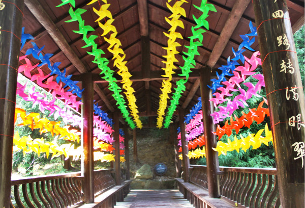 为迎接2018年的到来,水磨沟景区全体工作人员通过一个星期的辛勤努力,用数万只风车为景区量身打造了一件七彩风车新装。