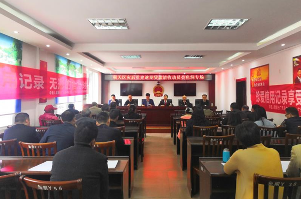 会上,农商银行朝天支行相关负责人就鱼洞信用环境现状进行了通报,向参会人员进行了征信知识宣讲。区人民法院相关负责人就金融借款案件进行了普法宣传,从个人经历到真实案例讲解了征信以及不履行贷款合同的后果及危害。区财政局相关负责人宣讲了农房重建贷款产生的背景和政策,向灾后重建贷款户说明了不归还农房重建贷款的后果,并要求相关贷款户限期归还和处理。