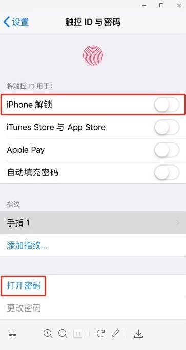 点击【设置-触控ID与密码(或面容ID与密码)-iPhone解锁(打开密码)】。