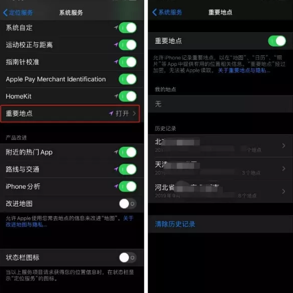 点击【设置-隐私-定位服务-系统服务-重要地点-关闭】。