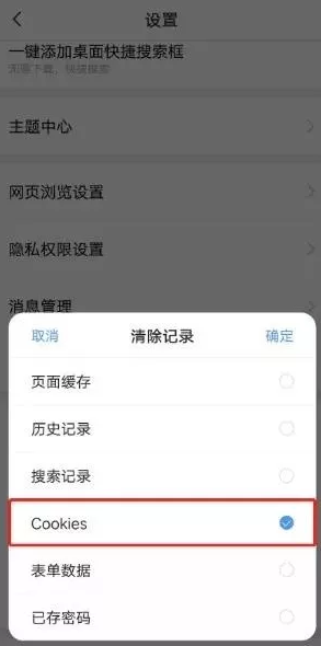 点击【手机自带浏览器-我-设置-清除记录-Cookie】。