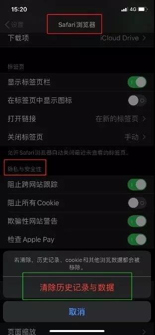 点击【设置-Safari浏览器-隐私与安全性-清除历史记录与网站数据】