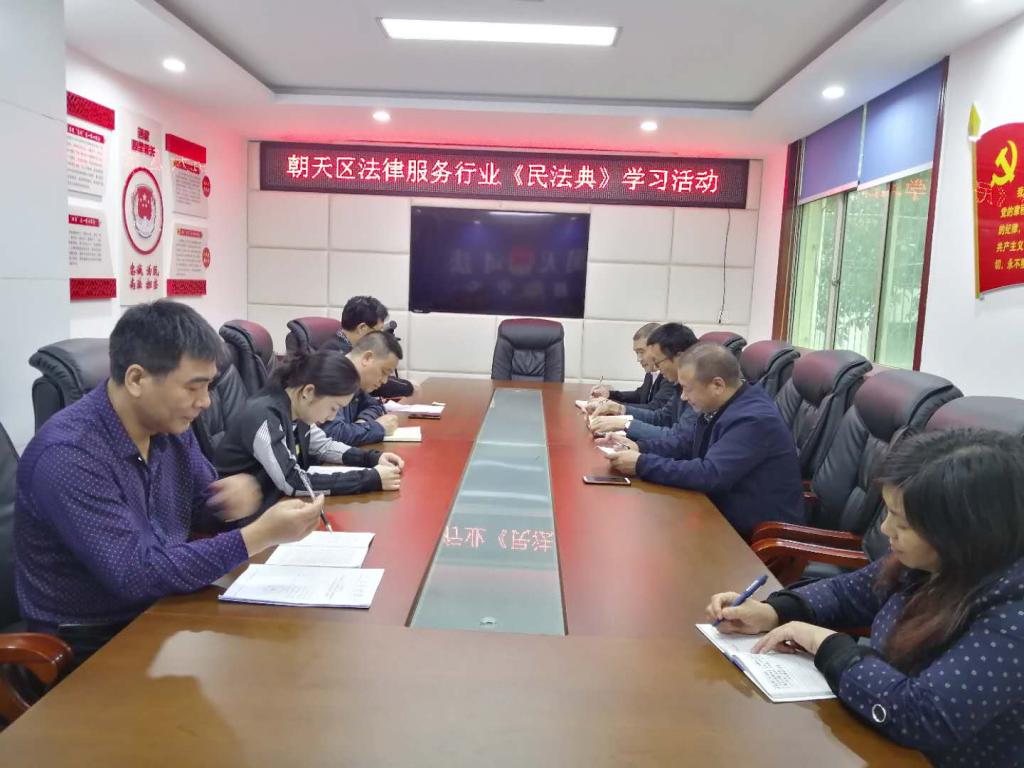 为切实加强对《民法典》的学习,更好的宣传《民法典》,为《民法典》的正式实施打下坚实基础。近日,区司法局组织全区执业律师、基层法律工作者等法律服务人员开展《民法典》集中学习培训,以提高法律服务人员的业务能力,为朝天新一轮发展提供坚强法治保障。