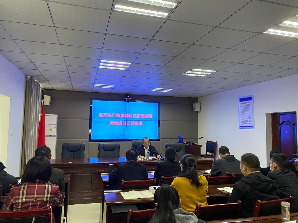 为深入推进我区司法行政系统队伍教育整顿工作,强化学习教育,3月17日下午,区司法局党组书记、局长、区司法行政系统队伍教育整顿领导小组组长冯万荣结合我区司法行政系统工作实际,以“提升‘三力’,把握‘三新’,勇做‘三牛’,努力提高司法行政队伍素质能力”为主题,集中为全区司法行政系统干部职工上了一堂意义深刻的党课。