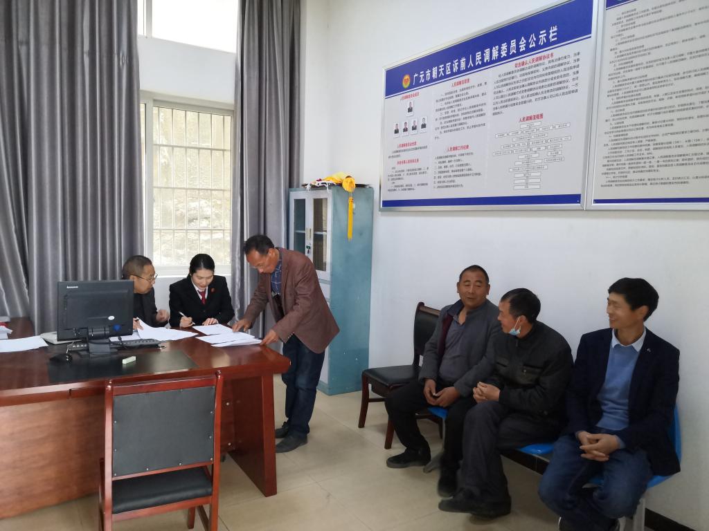通过多次电话与各方当事人沟通,黄某某从新疆回到朝天参加调解,经过调解,谢某某等8人与黄某某达成调解协议。了解到谢某某等人居住地离城区较远,乘车不便,区法院分管带领立案庭工作人员一同加班对双方当事人的还款协议进行了司法确认,于当天及时向双方出具了民事裁定书。自此,这批涉及8名民工工资的案件妥善解决。