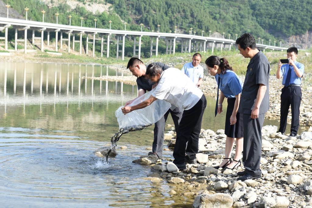6月4日上午8时许,区法院联合区检察院、区农业农村局、区公安分局,现场见证和监督非法捕捞水产品案件的被告人李某某在朝天镇嘉陵江支流水域开展增殖放流活动,放流价值2000余元的鲫鱼鱼苗和鲤鱼鱼苗,以恢复该流域的渔业生态环境。