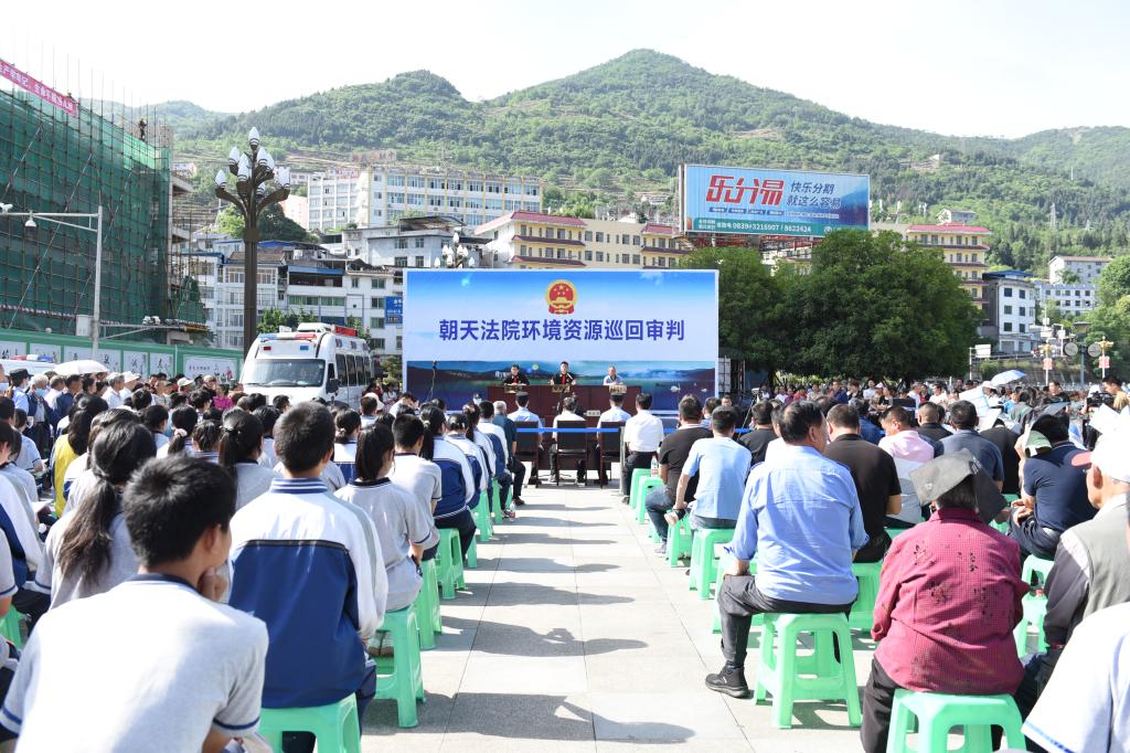 “长江十年禁渔是‘为全局计、为子孙谋’的重要决策,也是一项系统工程,我们今天在这里巡回审理就是要告知大家要遵守法律法规,不要因非法捕捞将自己‘捕’入法网。明天就是世界环境日,今年世界环境日的主题是‘人与自然和谐共生’。我们每个人都要从自身做起,保护环境,节约能源资源,低碳出行,不焚烧垃圾、秸秆,保护野生动植物,为建设美丽朝天贡献自己的力量,全面筑牢嘉陵江上游生态屏障,让我们的青少年和广大群众都生活在青山绿水中。”庭审中,本案审判长罗成以案释法,在庭审过程中为在场人员进行了法治宣讲。