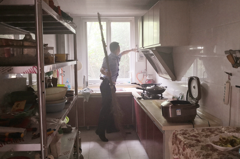 当日,朝天派出所接分局指挥中心指令:朝天区财政局旁小区内疑似天燃气泄露,请立即前往现场处置。接警后处警民警立即赶往现场,到达现场后发现小区6楼一住户房内浓烟滚滚,屋内空无一人,现场情况紧急,民警不顾个人安危深入屋内查看情况,发现厨房内天燃气灶火势猛烈,铁锅通红浓烟四起。民警立即将天燃气阀门全部关闭,并打开窗户及大门,切断屋内电源,疏散周边住户。火势完全控制后民警立即联系该住户陈某某并在其家中等待,直到住户到家确认安全后才离开。