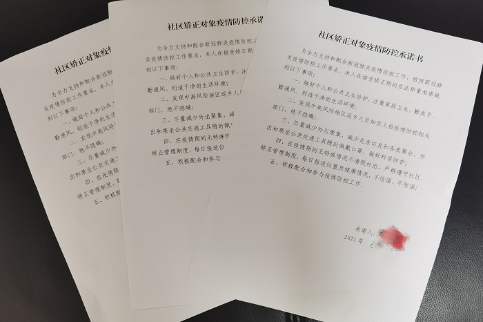 专题学习后,还组织社区矫正对象签订了《社区矫正对象疫情防控承诺书》。(王梦莉佳)