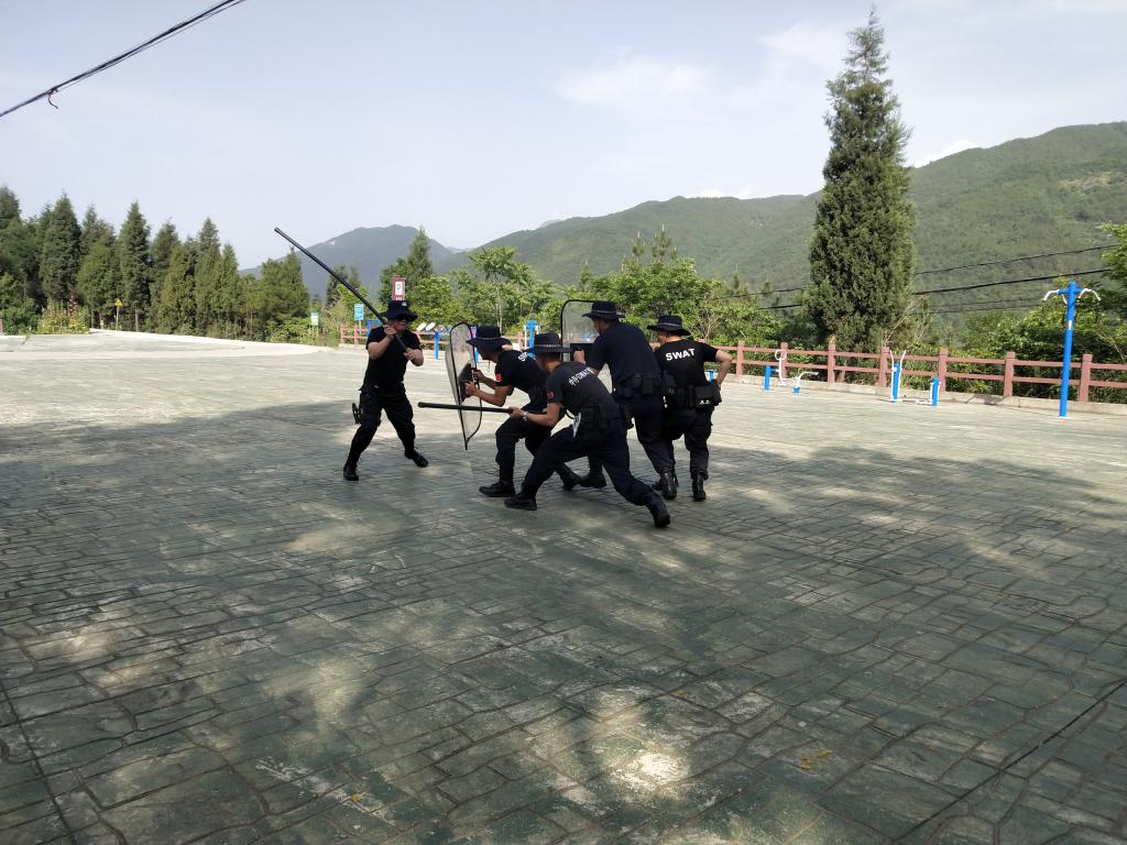 此次训练中,其中一名辅警模拟演“暴徒”闯入汽车站,对汽车站带来重大危险,特巡警大队五人快反小组在接到指令后迅速赶到现场处置,到达现场后,掩护群众撤离到安全区域,并快速使用钢叉盾牌长棍战法,对“暴徒”形成包围,抓住时机,果断处置,将其成功控制。