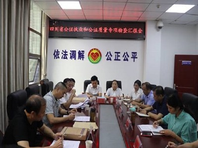 9月11日,四川省公证执业和公证质量专项检查组一行5人在广元市司法局副局长李霞的陪同下,对朝天公证处公证执业和工作质量进行了专项检查,区人民政府副区长、区公安分局局长李兆南及区司法局主要负责人参加检查。