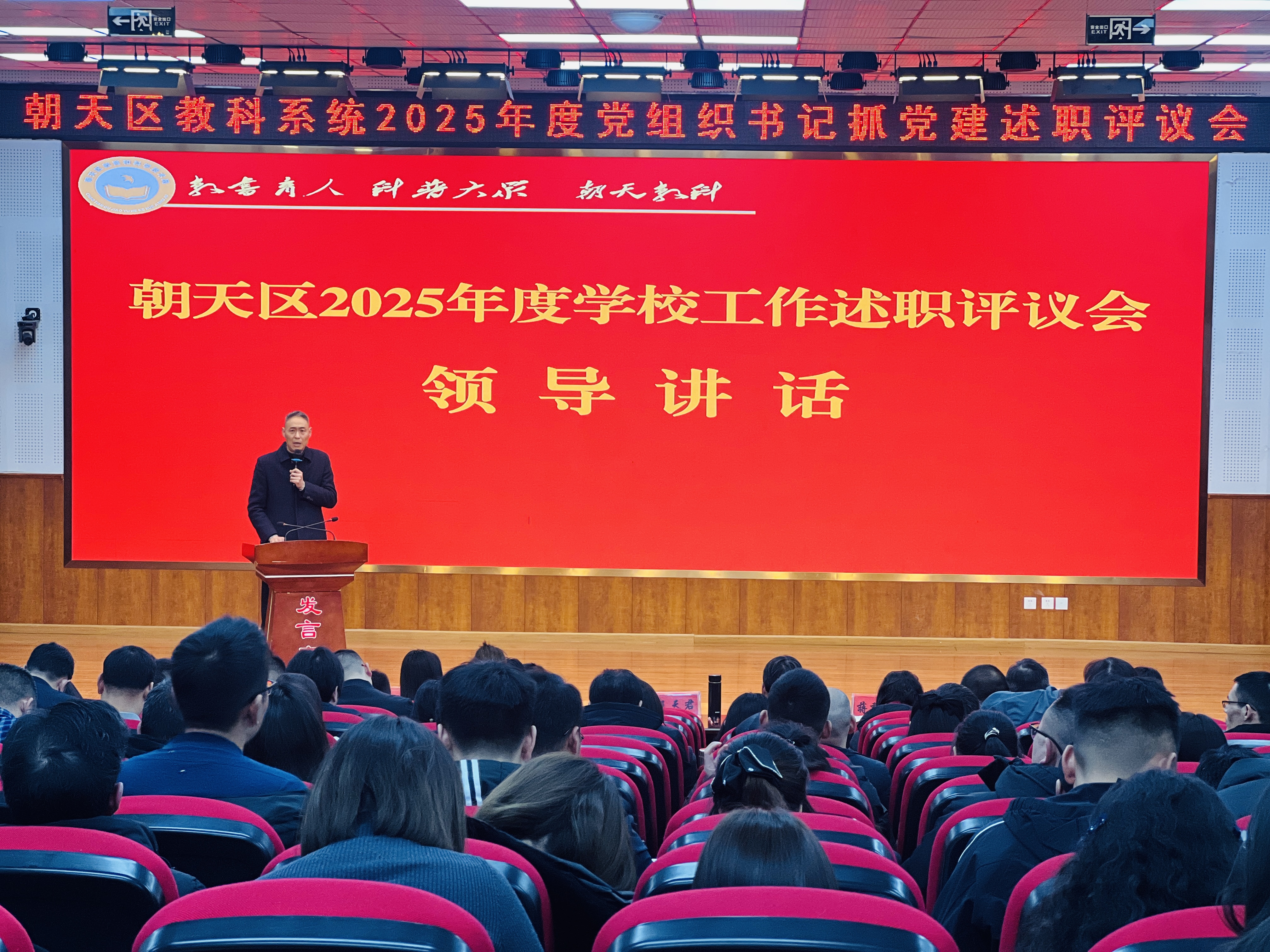 为全面检验校(员)长履职成效,压实办学治校责任,推动朝天教育高质量发展,1月2日,区教科局召开2025年度学校工作述职评议会。区教科局领导班子,全区学校副校级以上干部及负责学校教学、德育、安全的中层干部,片区教育督学、局机关全体干部共计200余人参会。